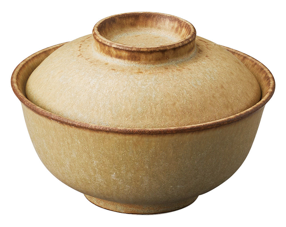 Bol Japonez cu Capac, Potelan Intarit, Glazura Bej Mata, 11.8 cm