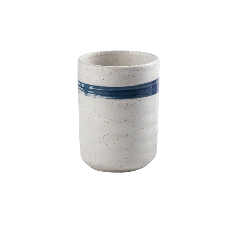 Cana Ceramica Japoneza, Alb cu Dunga Albastra, 280 ml