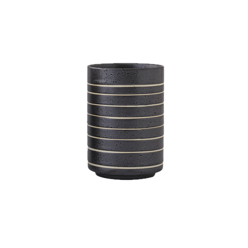 Cana Ceramica Japoneza, Neagra cu dungi albe, 300ml