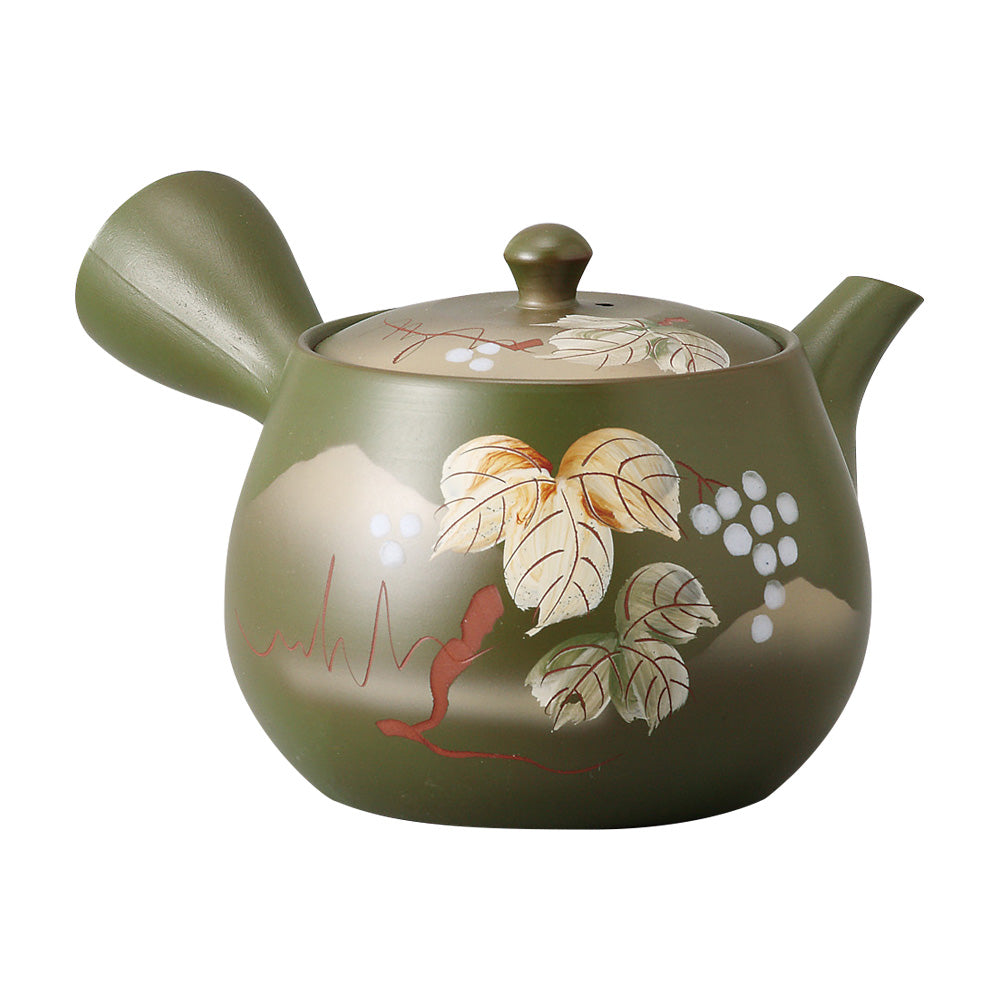 Ceainic Japonez din Argila Verde, Decor Struguri, 380ml