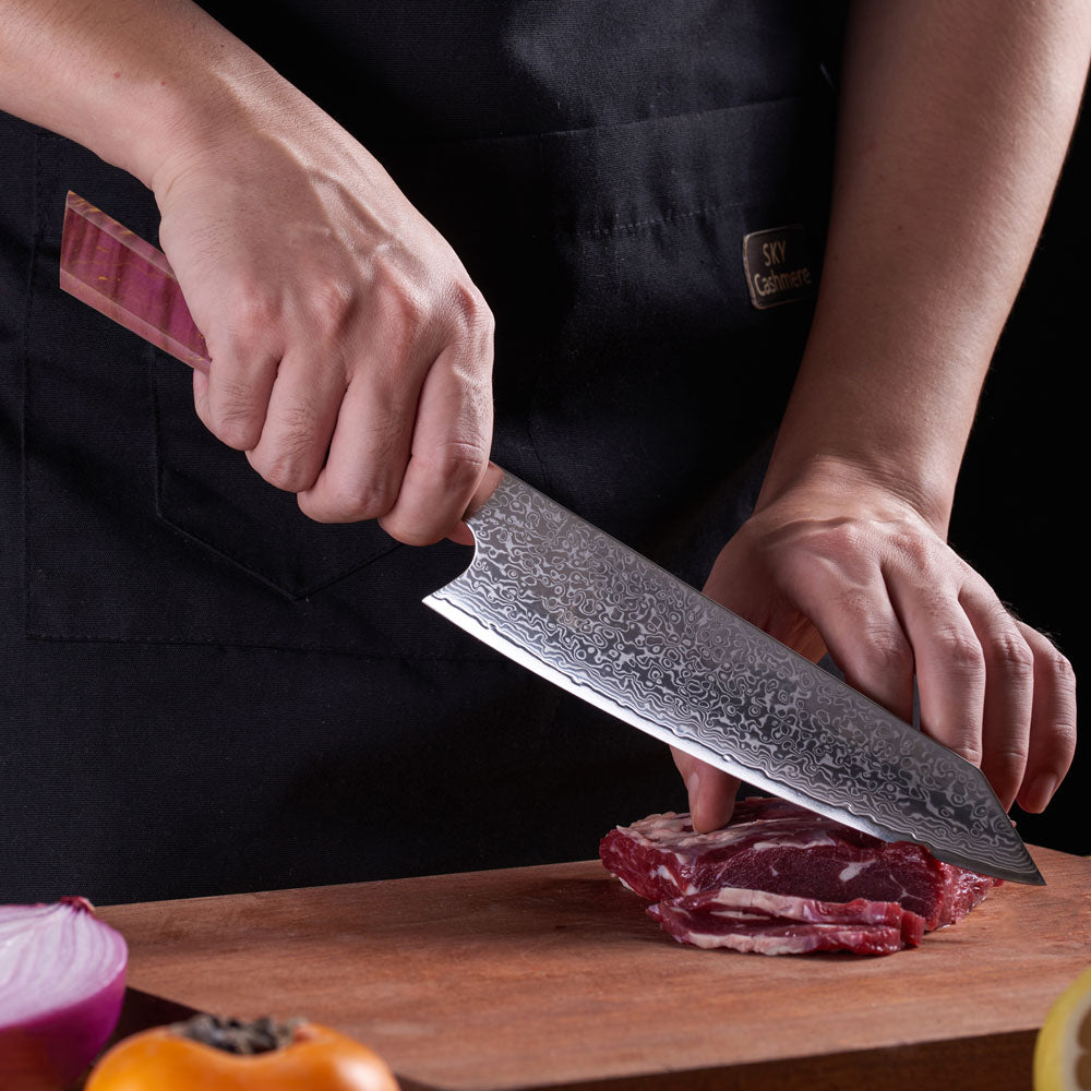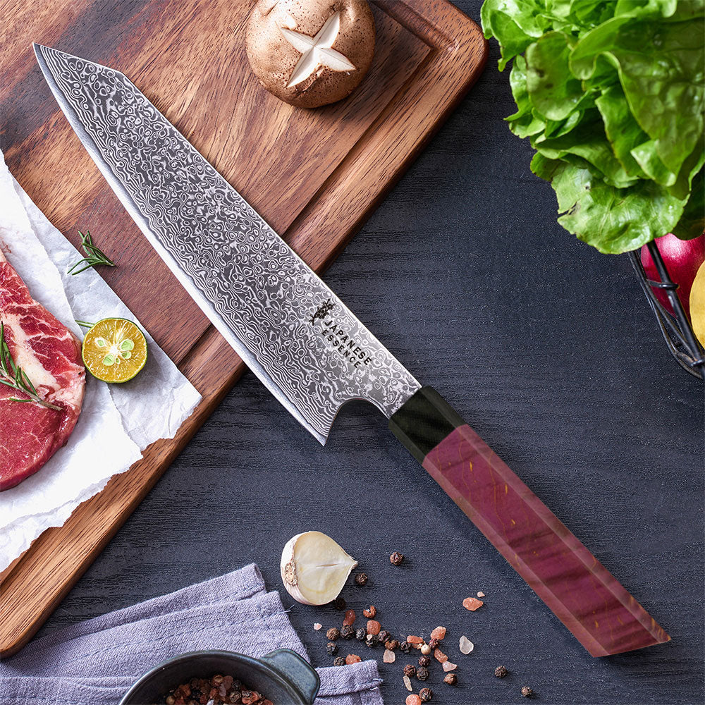 Cuțit Kiritsuke 21 cm din Otel Damasc cu Maner Ruby Flame