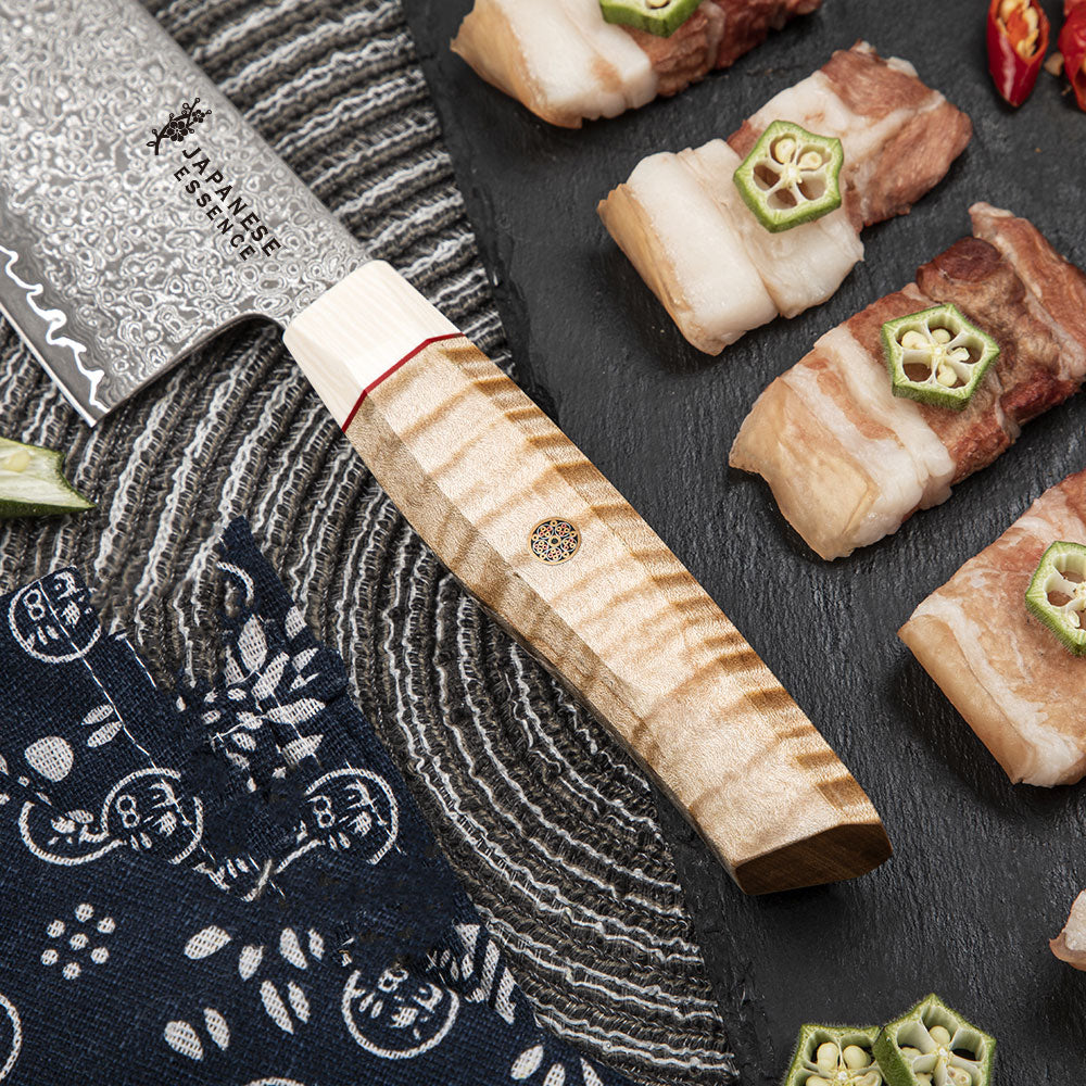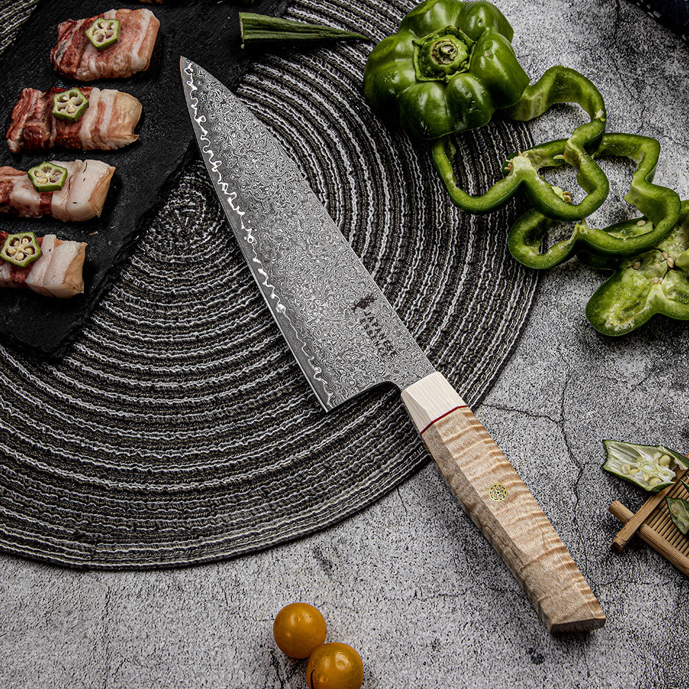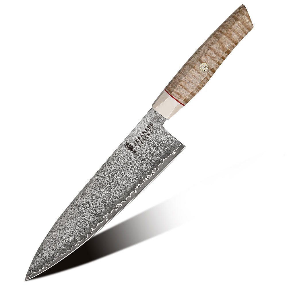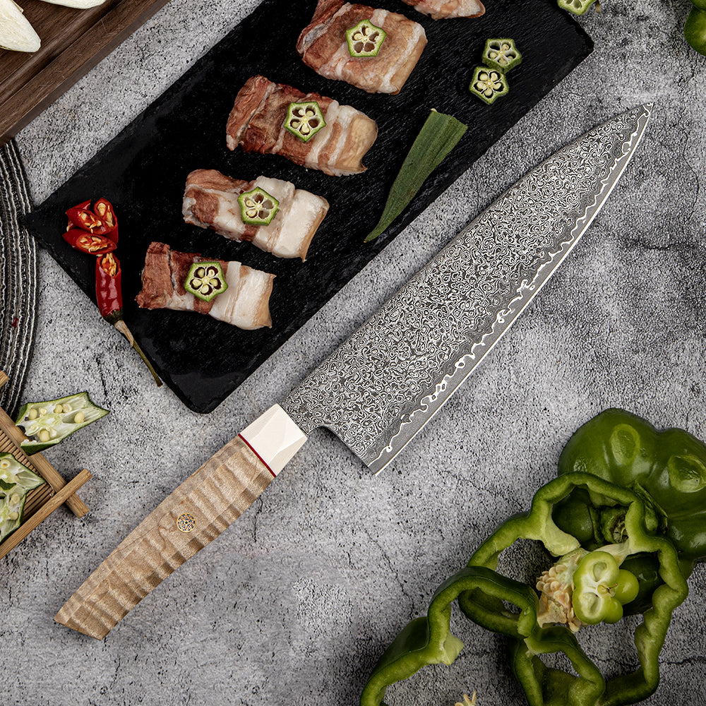 Cutit de Bucatar 20 cm din Otel Damasc cu Maner din Lemn de Artar si Rasina