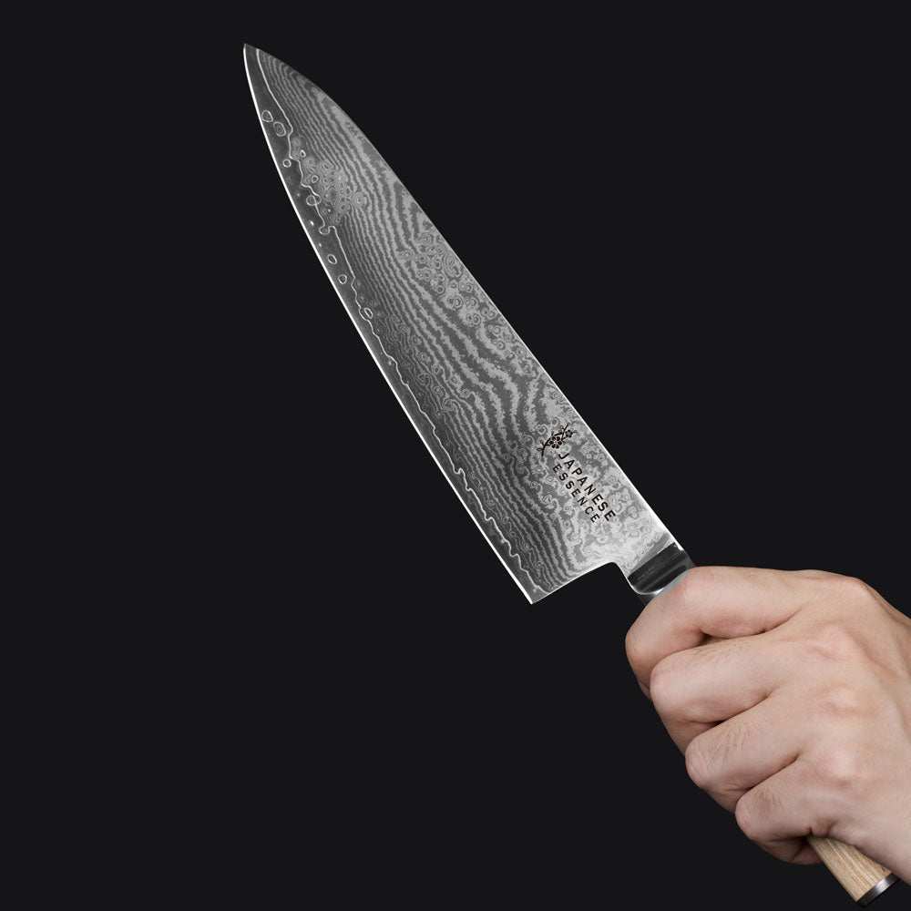 Acest cuțit de bucătar de 21 cm este creat pentru cei care caută excelență în fiecare tăietură. Lama sa este realizată din oțel Damasc cu 67 de straturi și un nucleu S35VN – un oțel premium cunoscut pentru durabilitatea sa remarcabilă și retenția superioară a tăișului.