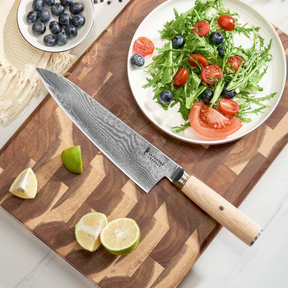 Cutit de Bucatar 21 cm din Otel Damasc cu Maner Pakkawood Natural