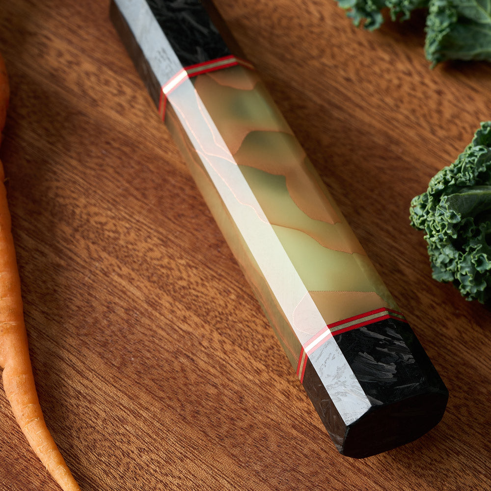 Cutit de Bucatar 21 cm din Otel Damasc cu Maner Fluorescent
