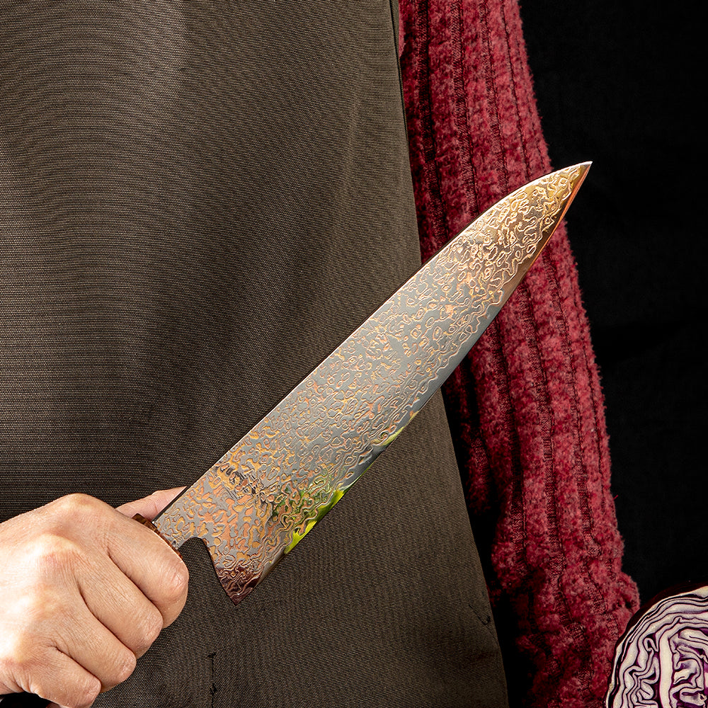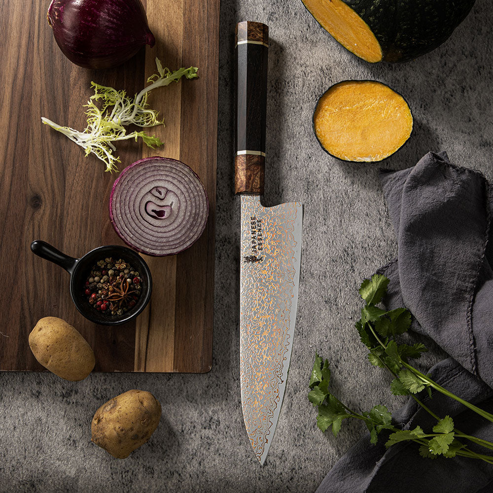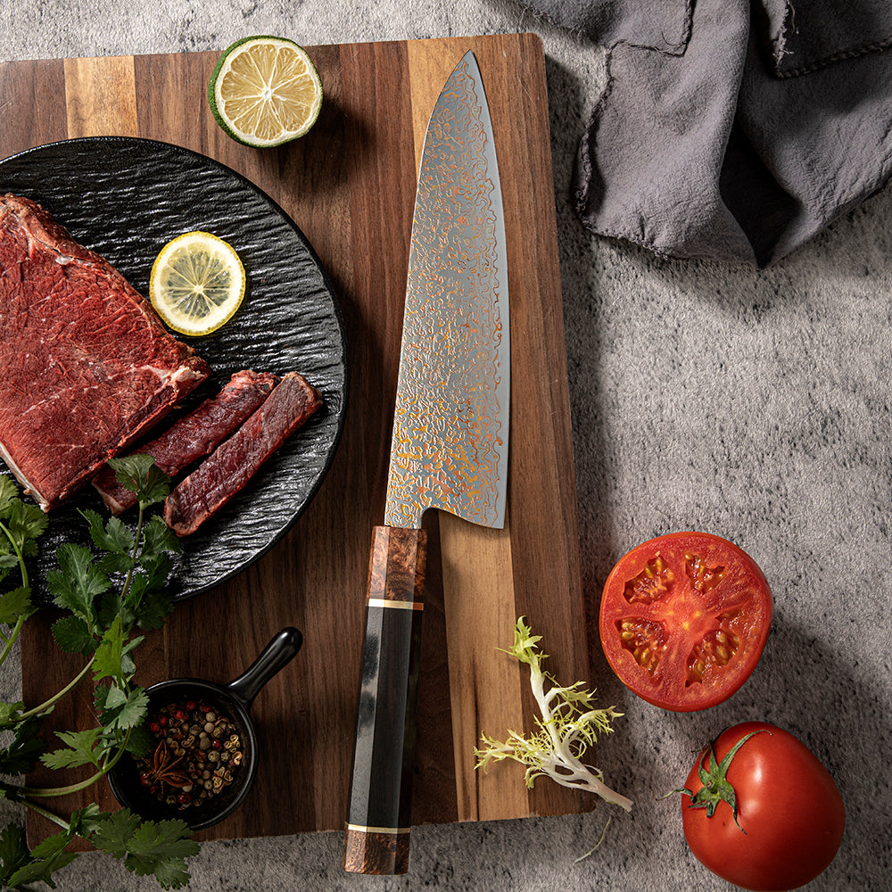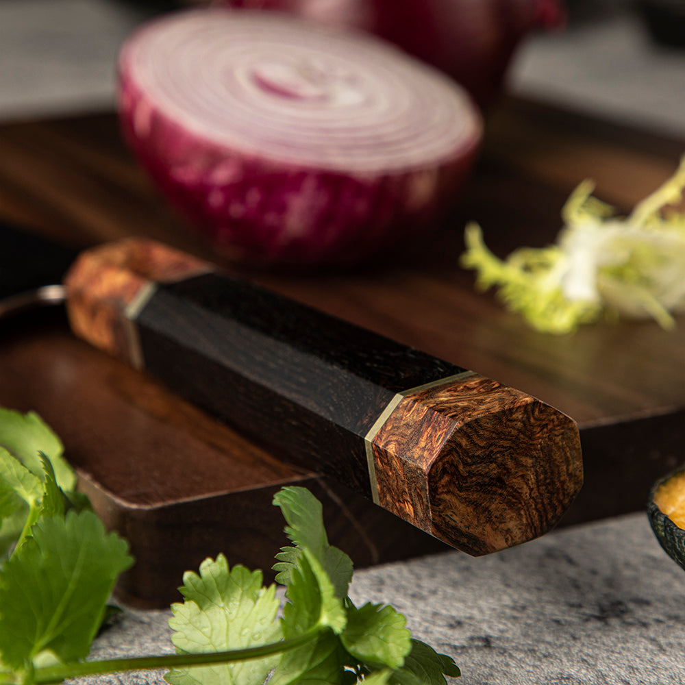 Cutit de Bucatar 21 cm din Otel Damascus cu Maner din Lemn de Abanos si Burl