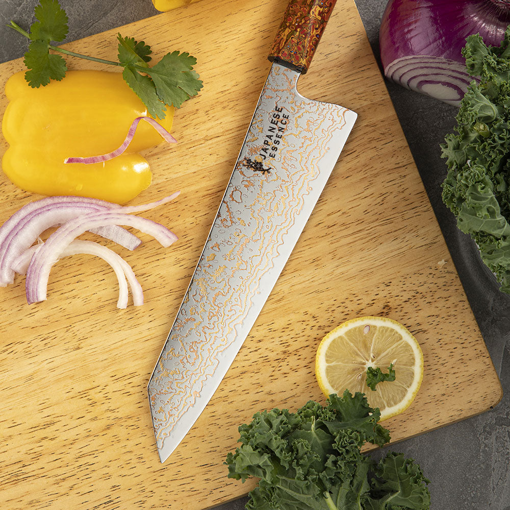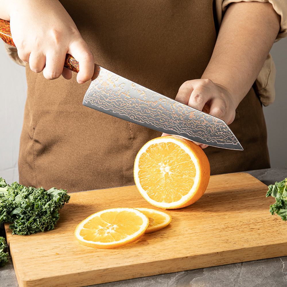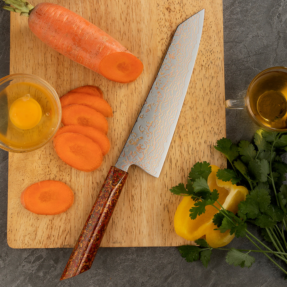 Cutit Kiritsuke 21 cm din Otel Damasc cu Maner Red Ember Lacuart