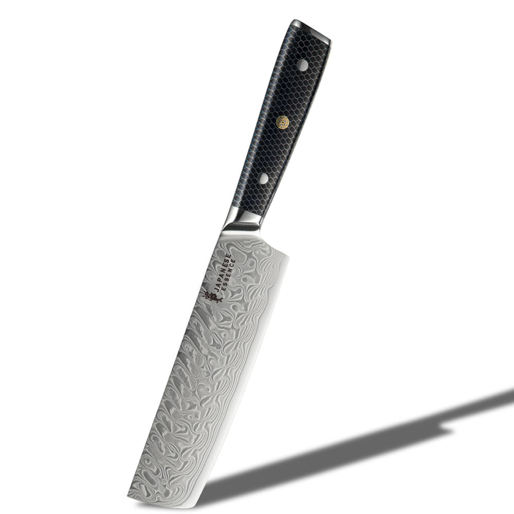 Cutit Nakiri 17.5 cm din Otel Damasc cu Maner Negru Honeycomb
