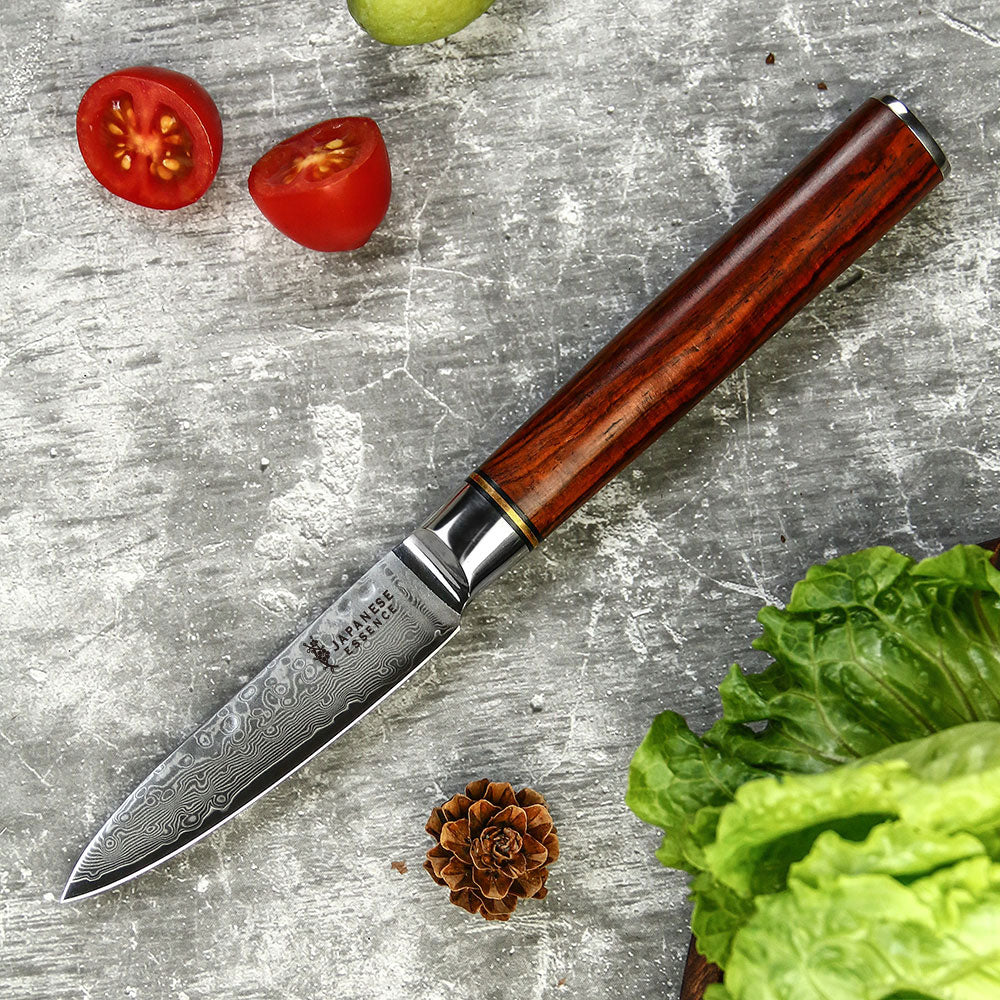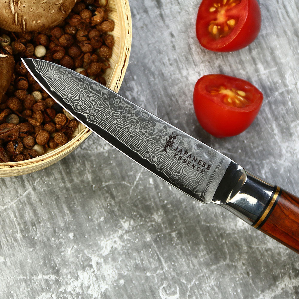 - Ideal pentru curățarea și pregătirea fructelor și legumelor.Lama Damasc 67 straturi – Rezistență superioară și tăieturi rafinate