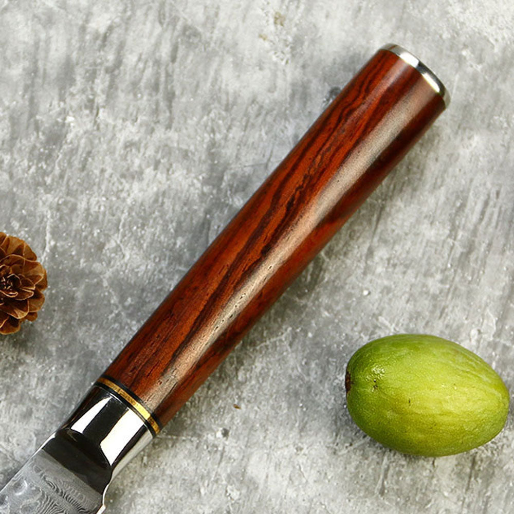 Cutit pentru curatat 7.6 cm din Otel Damasc cu Maner din Lemn de Trandafir