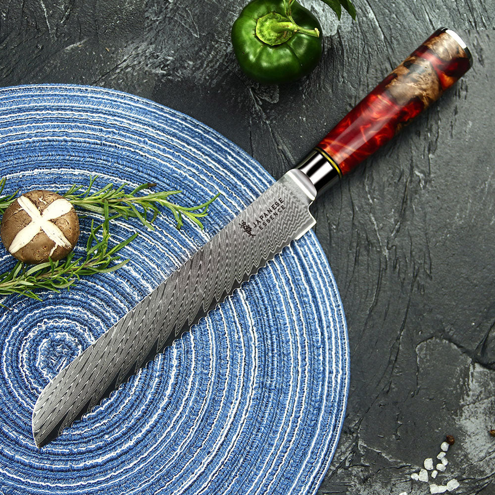 Cutit pentru Paine 19 cm din Otel Damasc cu Maner din Rasina