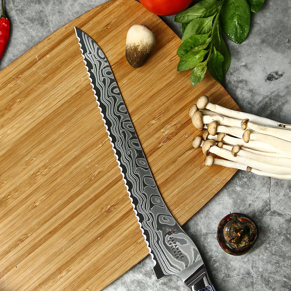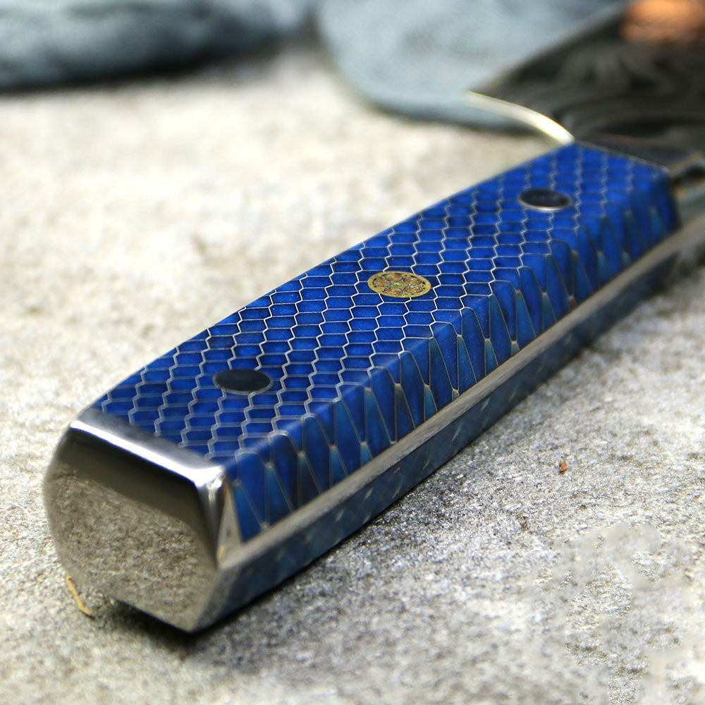 Cutit pentru Paine 25 cm din Otel Damasc cu Maner Blue Honeycomb