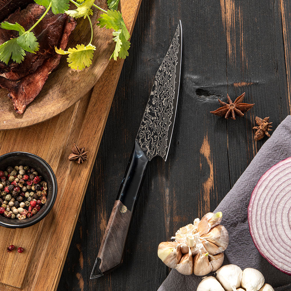 - Flexibilitate pentru sarcini de tăiere diverse.Lama Damasc 67 straturi – Design rafinat și tăiș de durată