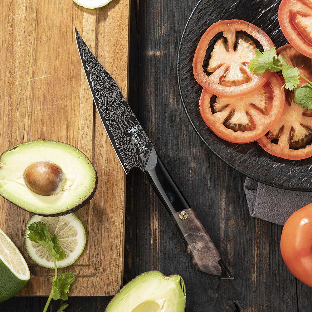 Cutit Universal 13 cm din Otel Damasc cu Maner din Artar si Rasina