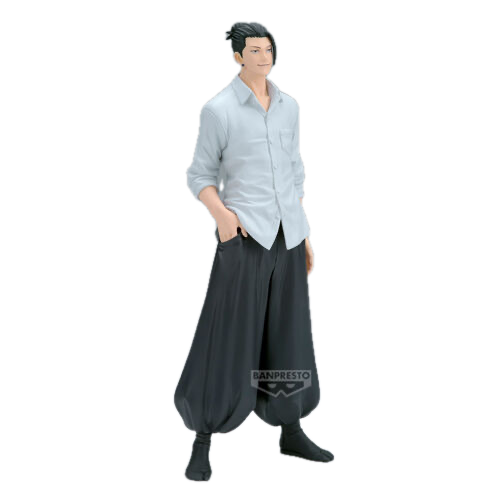 Figurină detaliată a personajului Suguru Geto din Jujutsu Kaisen, redată într-o postură relaxată, cu o expresie calmă și un design... Citeşte mai mult
