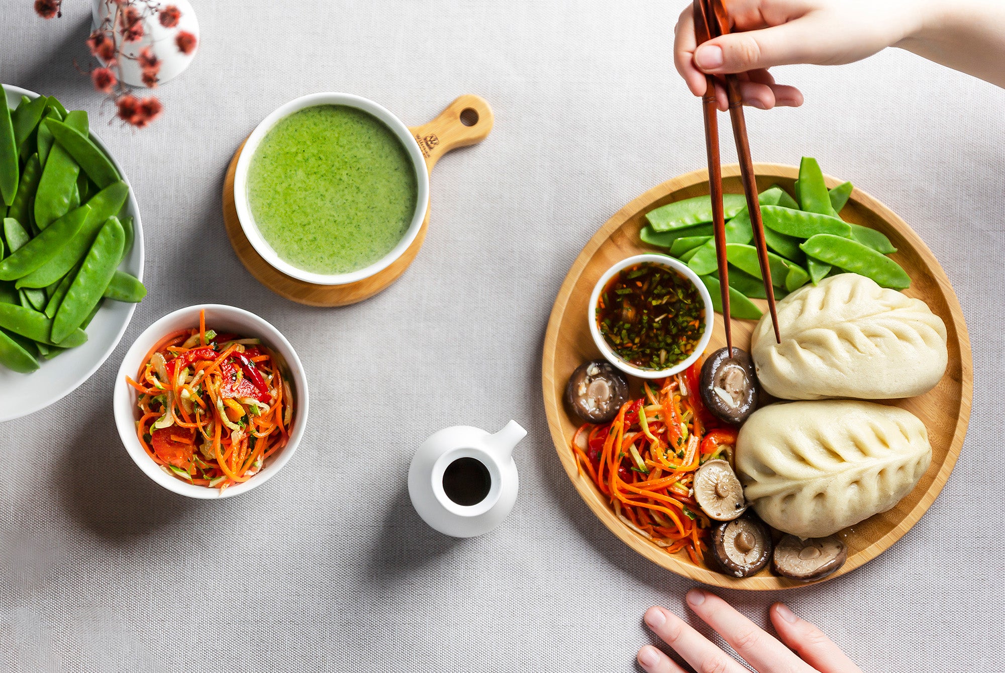 - Recipient special pentru sos de soia – ideal pentru servirea sosurilor asiatice la masa.