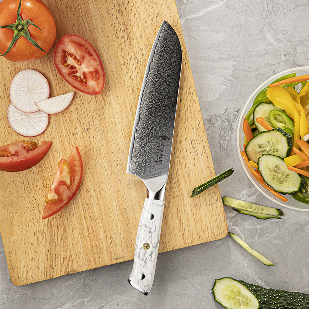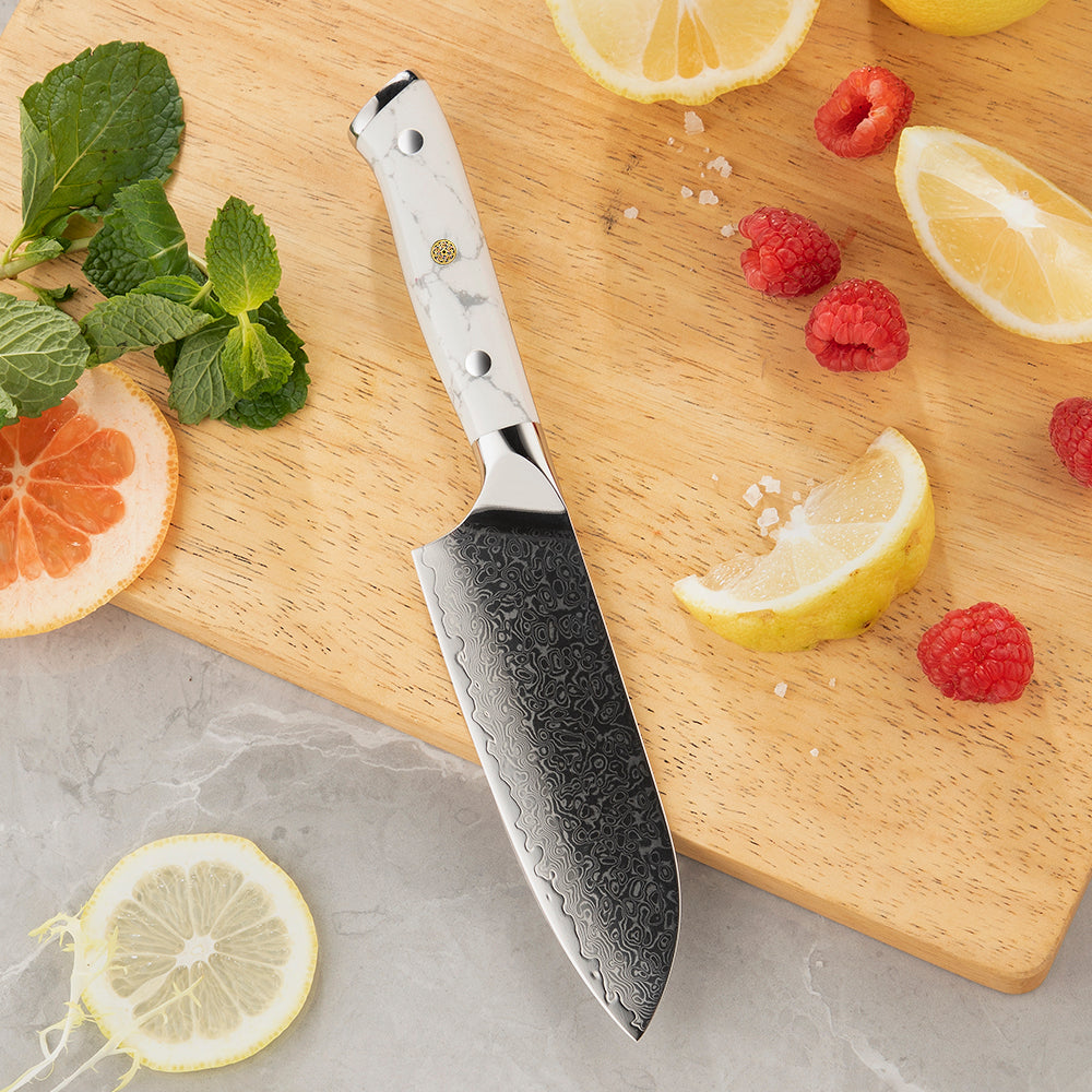 Cuțit Petty Santoku 13 cm – pentru sarcini delicate și detalii fine.