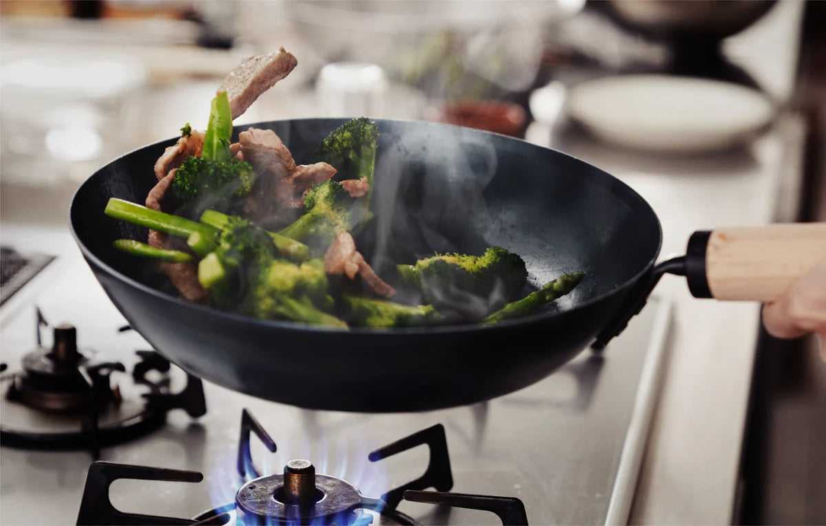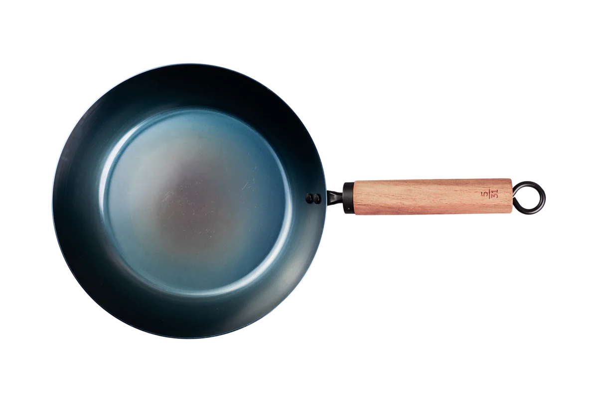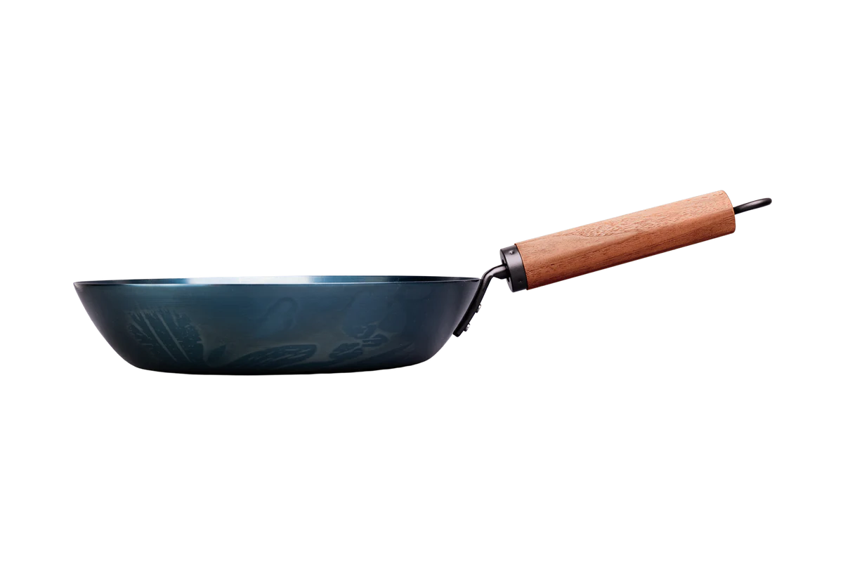 - Oțel carbon pre-seasoned – Reacție rapidă la căldură și patină naturală care se dezvoltă în timp