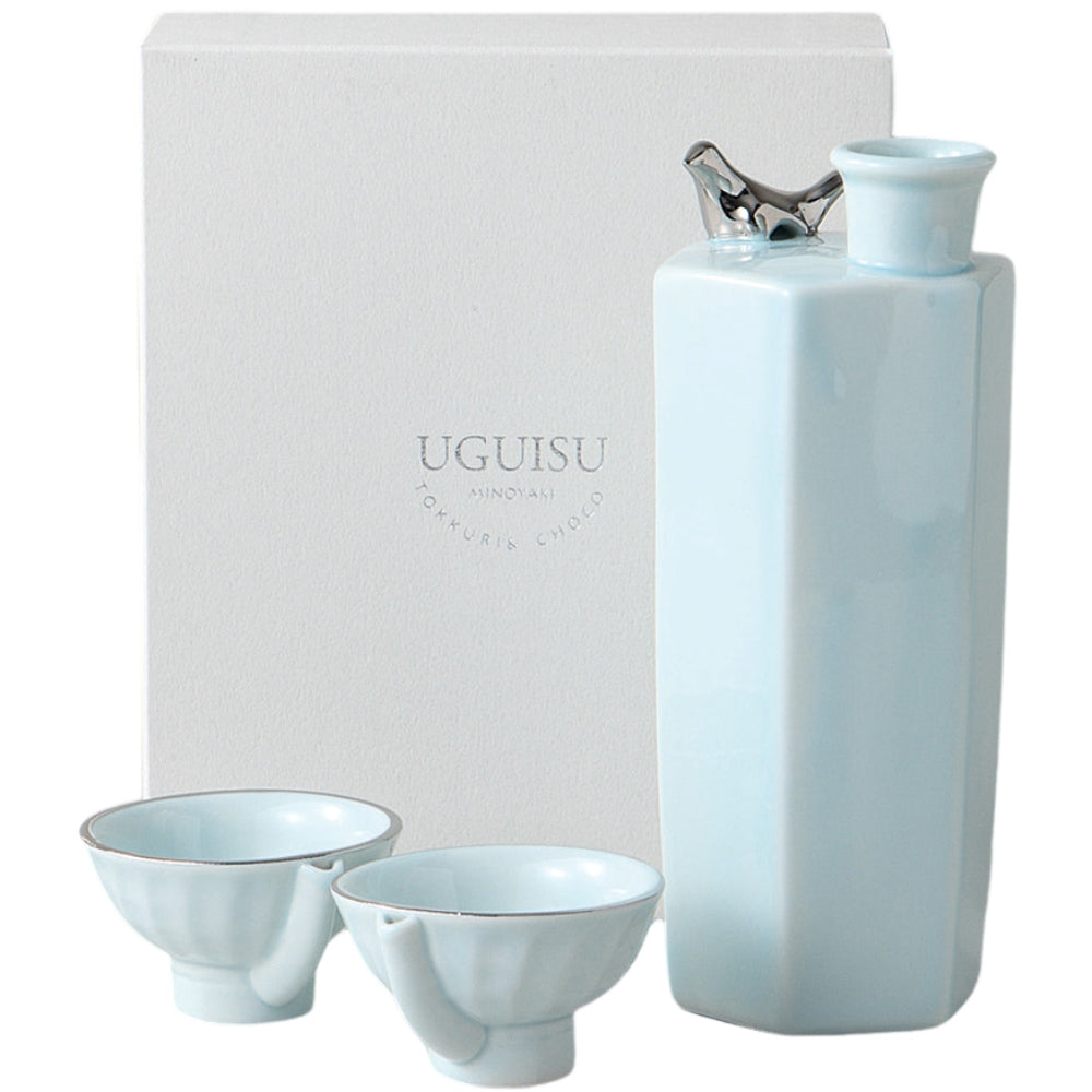 Set Japonez pentru Sake Uguisu, Portelan Celadon
