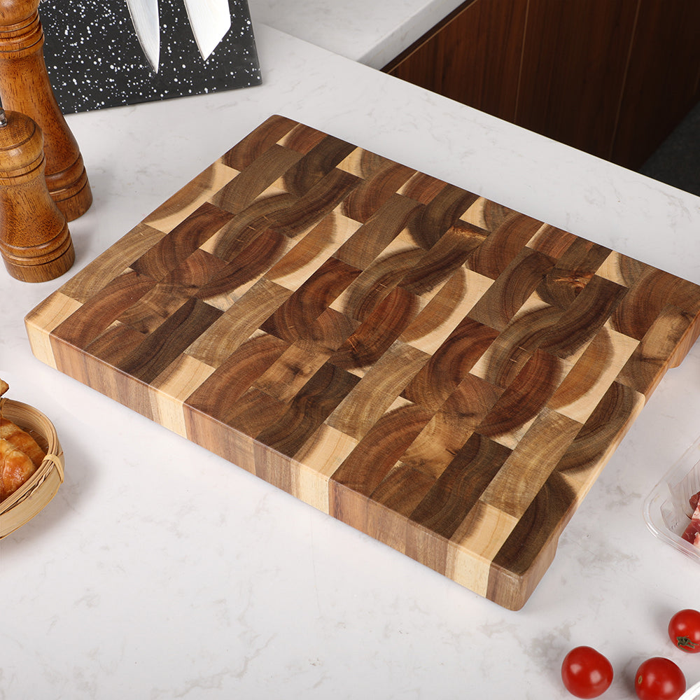 - Construcție end-grain – protejează lama cuțitului și prelungește durata de viață.